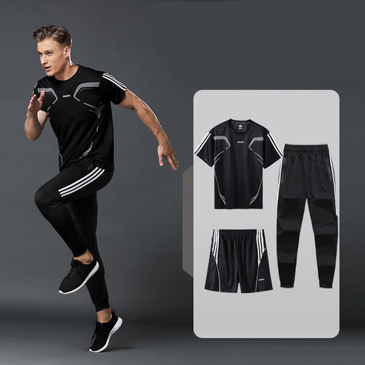 Sports Suit Men's Summer Leisure Two-Piece Three-Piece Fitness Suit Night Running Running Suit Quick-Drying Short-Sleeved Basketball SuitT