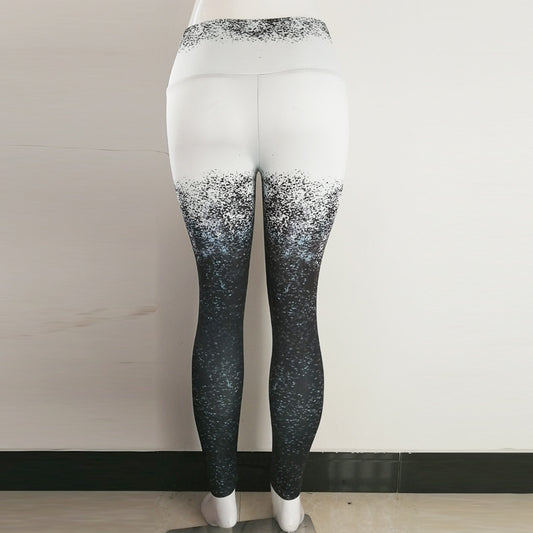 Black and white gradient digital printed sports yoga pants